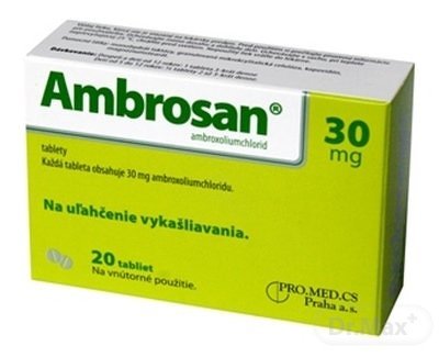 Ambroxoliumchlorid, liečivo v lieku, zvyšuje vylučovanie hlienu z dýchacích ciest, uľahčuje jeho vykašliavanie a zmierňuje kašeľ. Liek sa používa na sekretolytickú (uľahčujúcu vykašliavanie) liečbu pri akútnych a chronických ochoreniach priedušiek a pľúc sprevádzaných narušenou tvorbou väzkého prieduškového hlienu a jeho sťaženým transportom a vylučovaním. Spôsob použitiaDávkovanie a dávkovacie schémy Dospelí a dospievajúci od 12 rokov: 1 tableta 3x denne. Liečebný účinok sa môže zvýšiť podaním 2 tabliet 2x denne. Deti 6–12 ročné: ½ tablety 2-3x denne. Liečebný účinok sa môže zvýšiť podaním ½ tablety 4-6x denne. Ak sa príznaky ochorenia nezlepšia do 7 dní (dospelý) alebo do 3 dní (dieťa) alebo ak sa zhoršia, je potrebné sa obrátiť na lekára. Spôsob použitia Liek je na perorálne použitie. Tablety sa môžu užívať nezávisle od príjmu jedla a majú sa dostatočne zapiť. Prívod tekutín zvyšuje sekretolytický účinok ambroxoliumchloridu. Tableta má deliacu ryhu. ktorá umožňuje rozdelenie na rovnaké dávky. Upozornenie Liek sa neodporúča užívať počas tehotenstva, hlavne v 1. trimestri. Užívanie lieku sa neodporúča dojčiacim matkám. Liek obsahuje laktózu. Ďalšie osobitné upozornenia sú uvedené v SPC (časť ). Účinné látkyambroxoliumchlorid