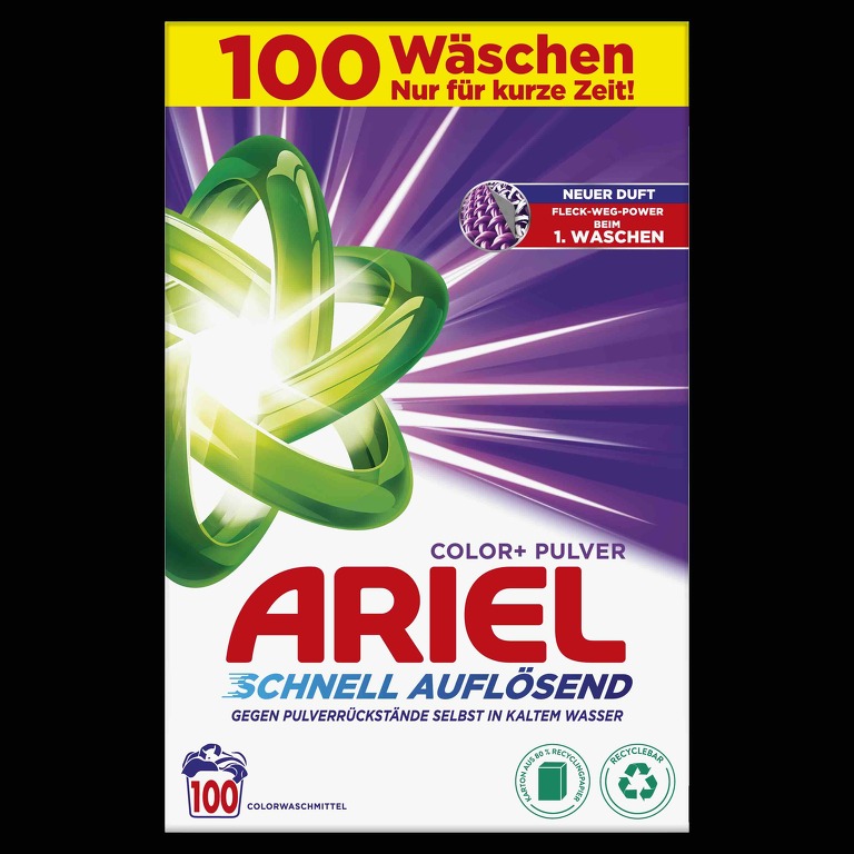 Predstavuje rýchlorozpustný prášok na pranie Color Protection. Odstraňuje škvrny už po 1. praní, vo vode sa rýchlo rozpúšťa, nezanecháva zvyšky ani v studenej vode, aktivuje sa okamžite.