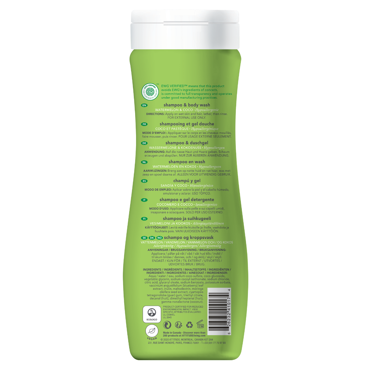 ATTITUDE Detské telové mydlo a šampón (2 v 1) Little leaves s vôňou melónu a kokosu 473 ml 473ml