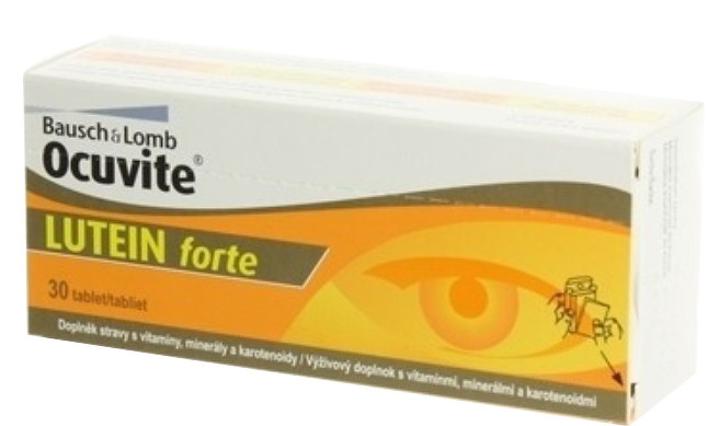 OCUVITE LUTEIN forte 30 tablet Výživový doplnok s obsahom vitamínov, minerálov a a karotenoidov. Karotenoidy luteín a zeaxantín sa vo vysokej koncentrácií nachádzajú v centrálnej oblasti sietnice zodpovedajúcej za ostré videnie.