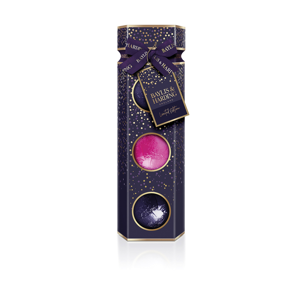 Baylis & Harding Sada šumivých gulí do kúpeľa 1×1 set, Mulberry Fizz - Moruša a mučenka, 3ks