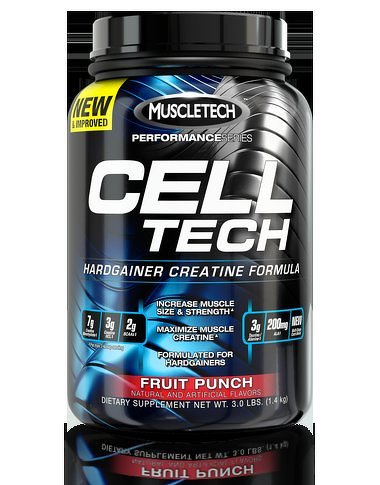Cell-Tech Performance Series - Muscletech: Jedinci, ktorí konzumovali množstvo kreatínu a sacharidov počas nasycovavej fázy získali v priemere 3,4 libry svalov a to len v priebehu 7 dní.