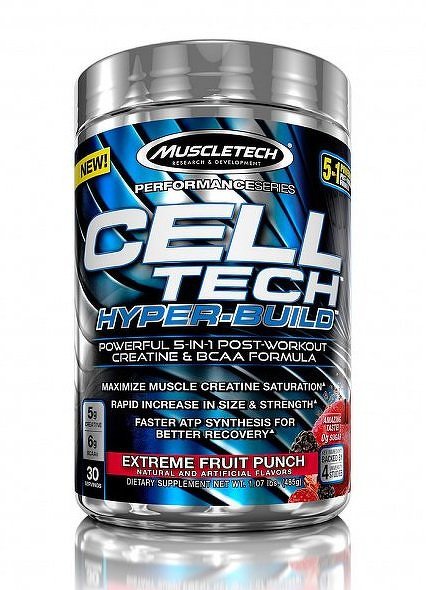 Celltech Hyper-Build od firmy Muscletech je výkonná 5 v 1 potréningová formula s kreatínom a BCAA.