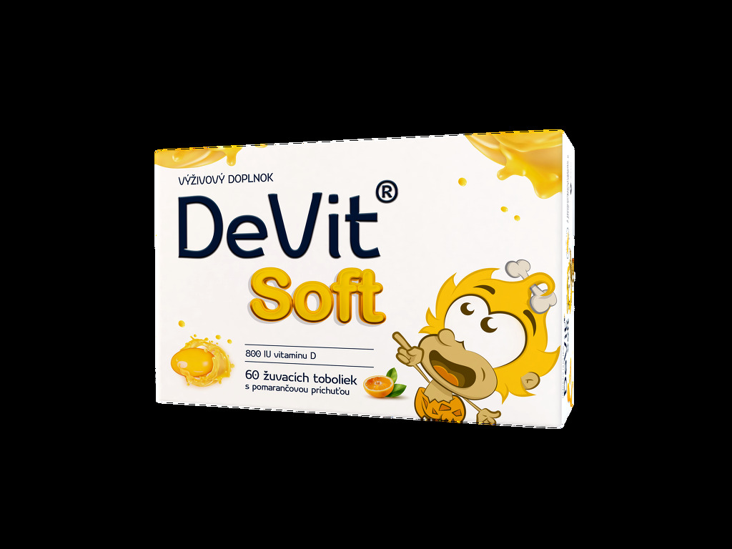 DeVit SOFT Žuvacie tobolky 60 kapsúl Žuvacie tobolky s pomarančovou príchuťou.
