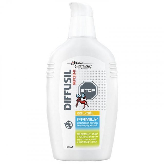 Diffusil® repelent Family gél zaisťuje efektívnu ochranu pokožky proti komárom až 4 hodiny. Prípravok je dermatologicky testovaný, neobsahuje parfumy, konzervačné látky a farbivá.Vhodný pre deti od dvoch rokov. Účinná látka: Icaridin 16%Spôsob použitiaGél sa nanáša priamo na miesta, ktoré majú byť chránené pred hmyzom. Upozornenie: Pri aplikácii je potrebné chrániť oči a sliznice. Neaplikovať na poranenú kožu.