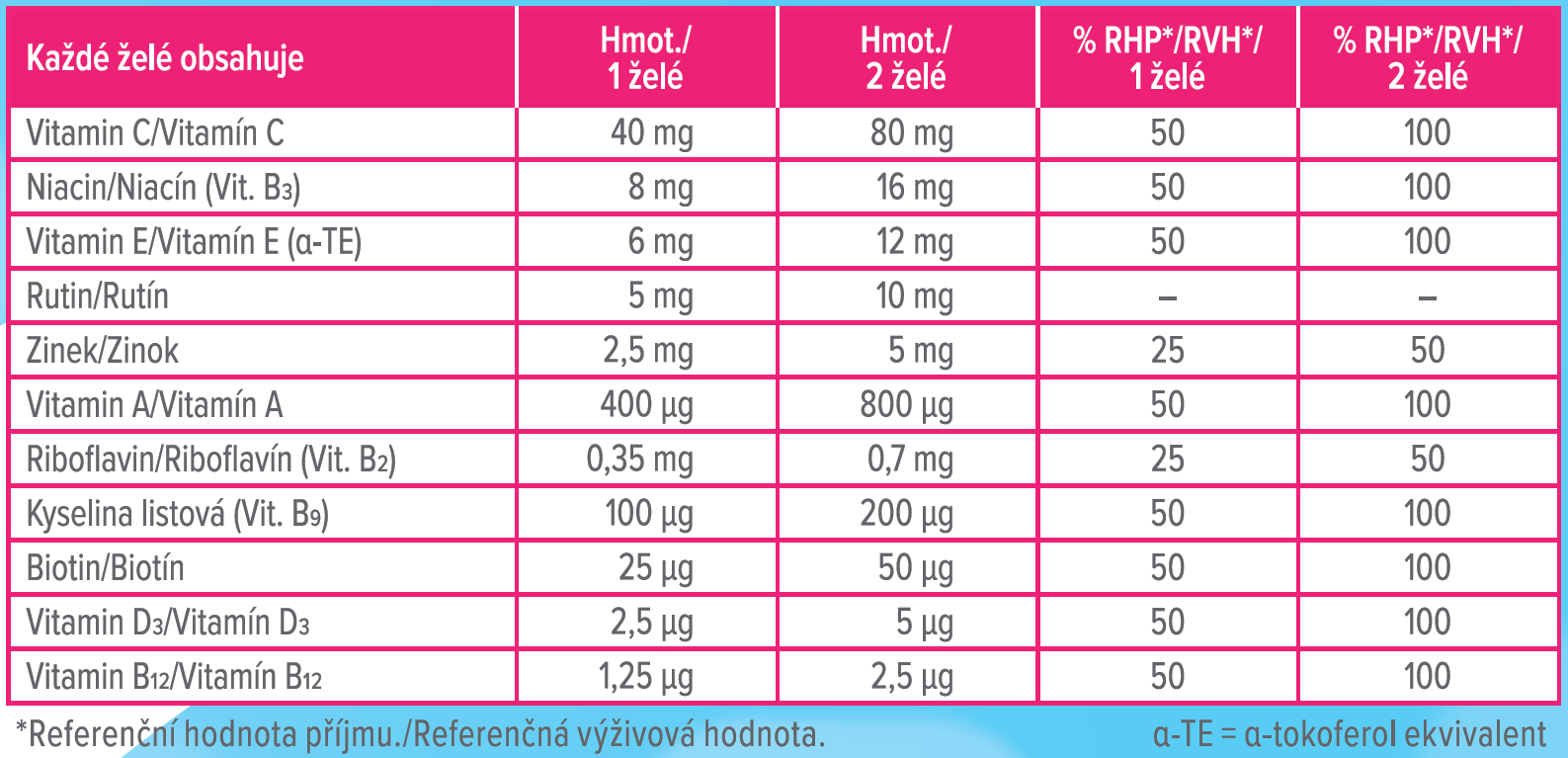 Výživový doplnok vo forme ovocných želé s vitamínmi, zinkom a rutínom určený pre deti.