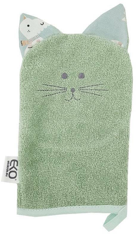 EKO Žinka bavlnená s uškami Cat Olive green 20x15 cm