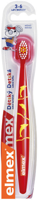 Elmex Detská zubná kefka 3-6 rokov Aby ste podporili prvé pokusy o samostatné čistenie, dajte dieťaťu zubnú kefku, ktorá bude zodpovedať jeho motorickým schopnostiam. Tou najlepšou voľbou je špeciálna zubná kefka pre deti s ľahko uchopiteľnou a protišmykovou rukoväťou, malou čistiacou hlavou a mäkkými vláknami.