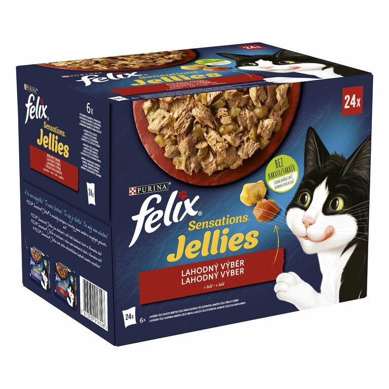 Kompletné krmivo pre dospelé mačky FELIX® Sensations® Jellies je rad neodolateľných krmív vyrobených z kvalitných surovín, ktoré výborne vyzerajú, voňajú a samozrejme lahodne chutia vašej mačke.