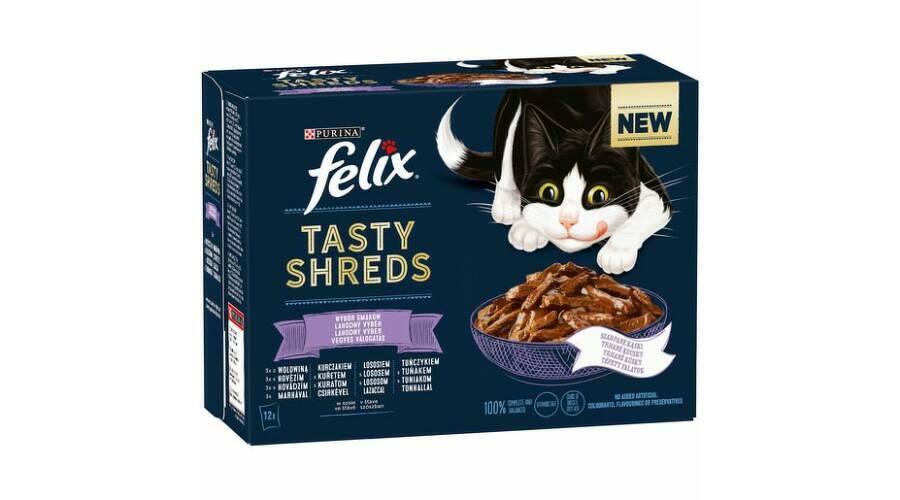 Kvalitný FELIX TASTY SHREDS lahodný výber v šťave 12 x 80 g za €.