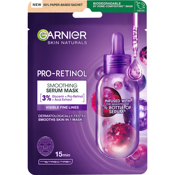Garnier Skin Naturals Pro-Retinol Smoothing Serum Mask vyhlazující pleťová maska 22 g