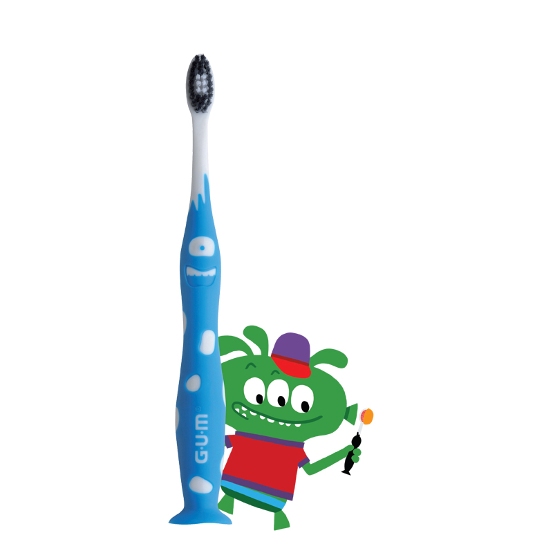 Gum Junior Monsters Zubná kefka pre školákov 7-9 rokov Zubná kefka GUM Junior Monsters má predĺžený krk pre jednoduché vyčistenie zadných zubov a úzku rukoväť s miestom na oporu palca.