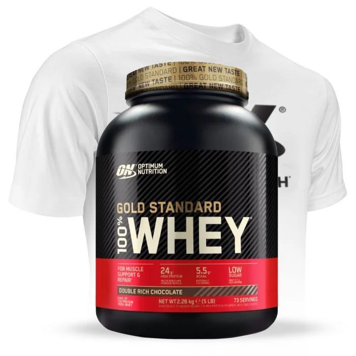 Proteín 100% Whey Gold Standard je najpredávanejší srvátkový proteín na svete, ktorý bol až 11-krát právom vyhlásený za “proteín roka”. V jednej dávke obsahuje unikátny, až 82%-ný podiel prémiových bielkovín a 5,5 g BCAA. Navyše vás poteší nízkym podielom sacharidov, cukrov, tukov a ďalších nežiaducich zložiek. Špičková kvalita robí zo 100% Whey Gold Standard kráľa medzi proteínmi! Objednajte si proteín 100% Whey Gold Standard a my vám k nemu ako darček pribalíme tričko True Strength vo farbe a veľkosti, ktorú si sami vyberiete v košíku. Pozor! Akcia sa nevzťahuje na 450 g balenie. Akcia sa nevzťahuje na veľkoobchodných zákazníkov.