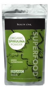 Health link BIO Spirulina prášok 200 g Sladkovodná riasa spirulina obsahuje všetky esenciálne aminokyseliny a je bohatým zdrojom bielkovín a vlákniny. Bielkoviny vo Spirulina podporujú rast a udržanie svalovej hmoty a udržanie normálneho stavu kostí.