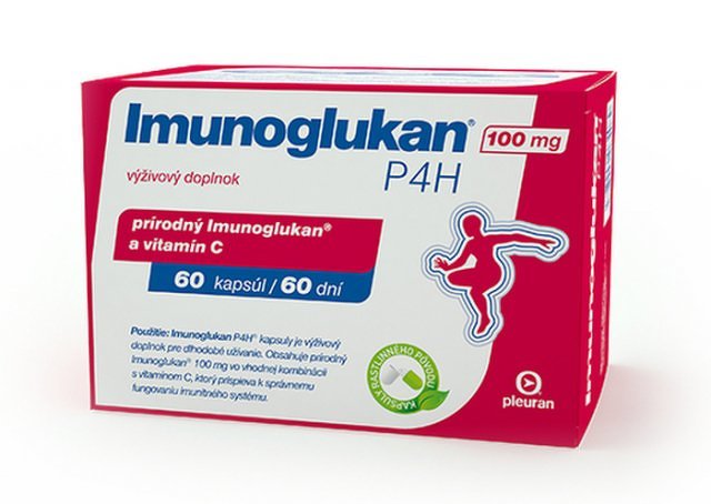 Výživový doplnok pre dlhodobé užívanie. Hlavnou účinnou zložkou prípravku je prírodná látka Imunoglukan® vo vhodnej kombinácii s vitamínom C. Zloženie: 1 kapsula obsahuje Imunoglukan® 100 mg (RVH* neurčená), vitamín C (L-askorban vápenatý) 100 mg (125 % RVH*). Imunoglukan® je vysoko purifikovaná prírodná látka, komplex biologicky aktívnych polysacharidov, získavaný izoláciou z hlivy ustricovitej (Pleurotus ostreatus). Vitamín C prispieva k správnemu fungovaniu imunitného systému, k zníženiu vyčerpania a únavy, prispieva k ochrane buniek pred oxidačným stresom. *RVH – referenčná výživová hodnota Spôsob použitiaOdporúča sa užívať 1 až 3 kapsuly 1x denne a to dlhodobo (minimálne 2-3 mesiace). Kapsuly sa prehĺtajú vcelku a zapíjajú sa dostatočným množstvom vody, najlepšie večer pred spaním alebo ráno nalačno. V prípade potreby je možné obsah kapsuly vysypať na lyžičku, a tak užiť. Upozornenie: Nie je vhodný pre deti do 3 rokov. Prípravok nesmú užívať ľudia s transplantovanými orgánmi, užívajúci imunosupresíva len po odporučení lekára. Odporúčané dávkovanie sa nesmie prekročiť. Nepoužívať ako náhradu rozmanitej stravy. Ukladať mimo dosahu malých detí. Skladujte v suchu pri teplote od 5–25°C. Chráňte pred vlhkom, mrazom a priamym slnečným svetlom.