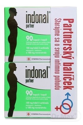 Výživový doplnok indonal® partner pre mužov a ženy. Indol-3-karbinol je látka, ktorá sa získava šetrnou extrakciou z kapustovitých rastlín (kapusta, brokolica, kel, karfiol). Resveratrol je flavonoid s vysokým obsahom mastných kyselín a ; Zloženie 1 kapsule: 150 mg indol-3-karbinol, 100 mg resveratrol, 20 mg kukuričný škrob. Kapsula: želatí; Spôsob použitiaOdporúča sa 1-2 kapsuly denne v 2 trojmesačných kúrach za rok. Osoby s hmotnosťou nad 70 kilogramov by mali užívať 3 kapsuly denne. Kapsuly je potrebné zapiť dostatočným množstvom vody. Upozornenie: Nie je vhodný pre deti, tehotné a dojčiace ženy. Nie je vhodný pre osoby s precitlivenosťou na niektorú zo zložiek produktu a osoby, ktoré užívajú lieky na zníženie sekrécie žalúdočných štiav. V prípade výskytu nežiaducich účinkov prerušte užívanie a poraďte sa s lekárom. Ustanovená odporúčaná denná dávka sa nesmie presiahnuť. Výživové doplnky sa nesmú používať ako náhrada rozmanitej stravy. Uskladňovať mimo dosahu malých detí.