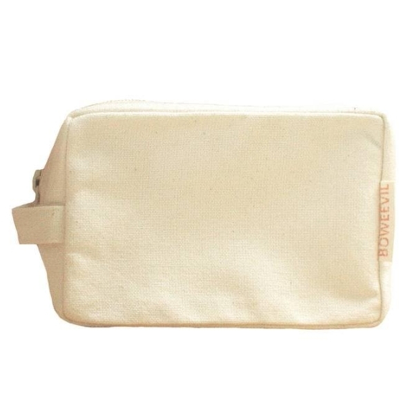 Táto malá kozmetická taška, ktorá sa hodí ako make-up taška je dlhá 17cm, vysoká 9 cm a široká 7 cm. Je vyrobená z organickej bavlny, zipsy sú značky: YKK, patria k tým najviac kvalitným- bežec na zipse je kovový.