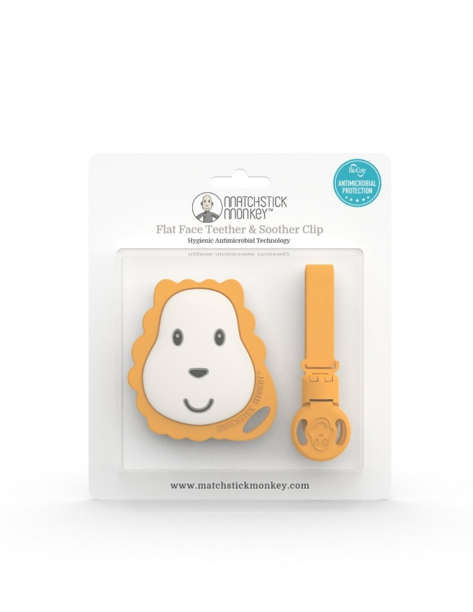 MATCHSTICK MONKEY Set klipu a hryzátka pre prvé zúbky - lev 1×1 set, klip a hryzátko
