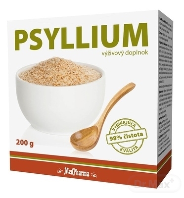 Výživový doplnok, Psyllium (Plantago ovata) je rastlinná vláknina. Psyllium je prirodzene bez lepku, je vhodné aj pre celiatikov. Zloženie: Plantago ovata – vyčistené obaly semien skorocelu. Spôsob použitiaOdporúčané dávkovanie: Ráno, poprípade aj večer, sa rozmieša v 250 ml vody 1–2 čajové lyžičky (2,5–5 g) psyllia. Pripravený nápoj sa vypije a dôkladne zapite ďalšou šálkou tekutiny. Najvhodnejšie je užívanie nalačno najmenej 30 min. pred jedlom. Maximálna denná dávka je 5 čajových lyžičiek, tj. 12,5 g.   Upozornenie: Nie je určené pre deti do 6 rokov. Ustanovená odporúčaná denná dávka sa nesmie presiahnuť. Dbajte na vyváženú, pestrú stravu a zdravý životný štýl. Referenčná výživová hodnota nie je stanovená. Výživový doplnok sa nesmie používať ako náhrada rozmanitej stravy.  Ukladajte mimo dosahu malých detí! Chráňte pred priamym slnečným žiarením.
