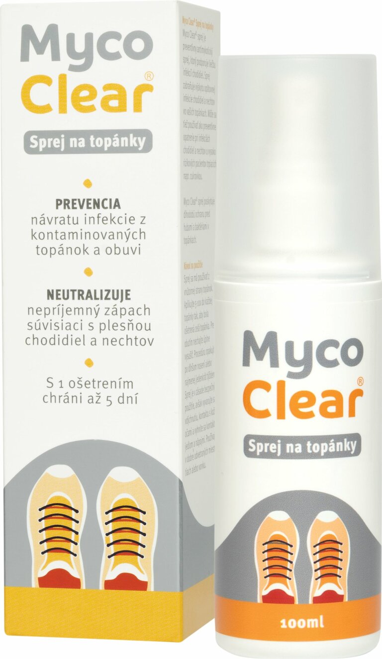 Myco Clear® sprej na topánky Myco Clear® sprej je preventívny antimykotický sprej, ktorý podporuje liečbu infekcií chodidiel.