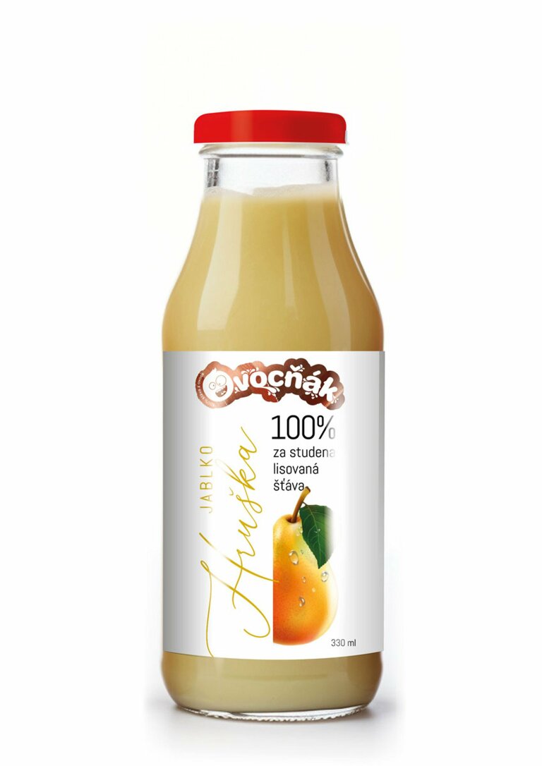 Ovocniak Mušt jablko a hruška 330 ml 100% šťava z ovocia, ktorá je vyrobená zo starostlivo vybraných plodov. Mušt je lisovaný za studena, aby sa zachovalo čo najviac z prírody. Do jedného 330 ml balenia je vylisovaných 530 g čerstvého ovocia a zeleniny. Je použitá šetrná pasterácia a nie sú pridané žiadne ďalšie látky. Ovocniak obsahuje iba prirodzene sa vyskytujúce ; Zloženie: Jablčná šťava 50%, hrušková šťava 50%. Hrušky sú skvelé na doplnenie energie a tekutín zároveň. Dodávajú muštu sladkosť a hustú krémovú konzistenciu, jablká sviežosť a jemnú kyslosť!