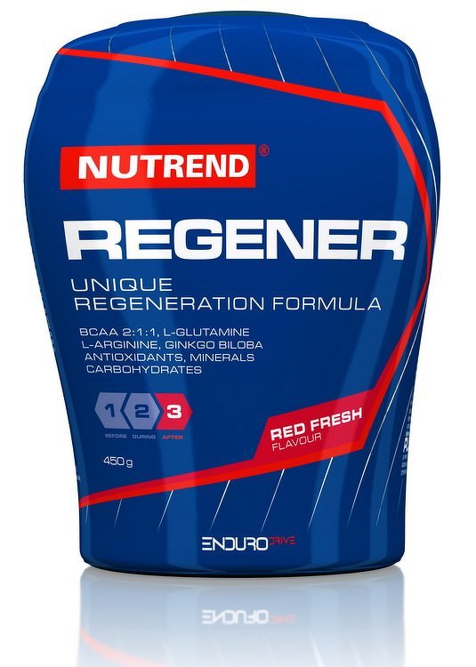 Regener - Nutrend: je unikátna regeneračná formula v instantnej forme nápoja, ktorá je určená pre vyčerpaný organizmus po fyzickom výkone, predovšetkým vytrvalostného a rýchlostne vytrvalostného charakteru.