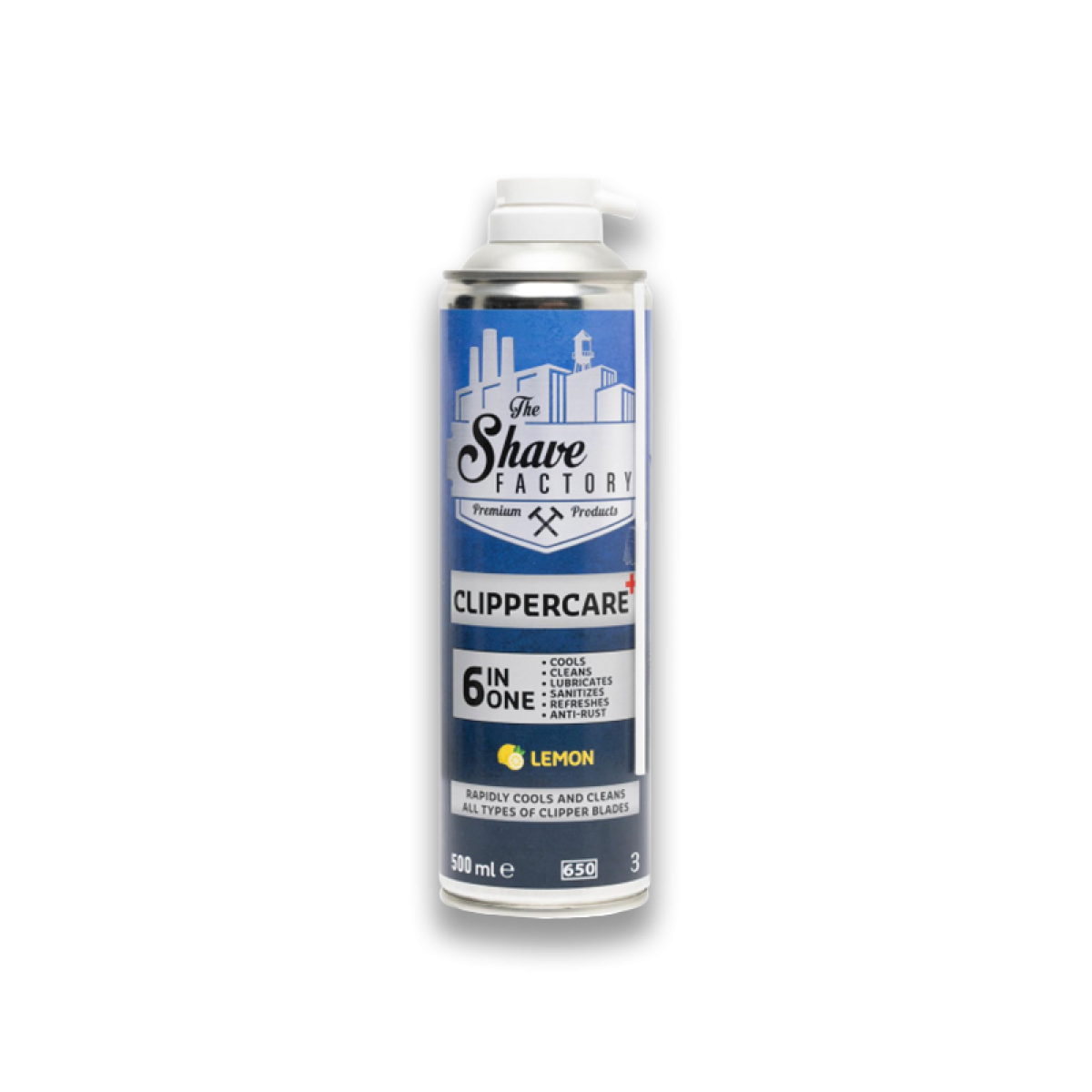 Shave Factory Clippercare Spray je účinný sprej, ktorý kombinuje chladiacu kvapalinu, lubrikant a čistič. Odporúča sa na profesionálnu údržbu čepele strihacieho strojčeka a na zaistenie toho, že zakaždým získate tie najlepšie výé použitie a predlžuje životnosť čepelí.Efekt 6v1 len v 1 vstreknutí: 1. ochladzuje 2. čistí 3. maže 4. dezinfikuje 5. osviežuje 6. Chráni proti hrdziObjem 500mlCitrusová vôňa
