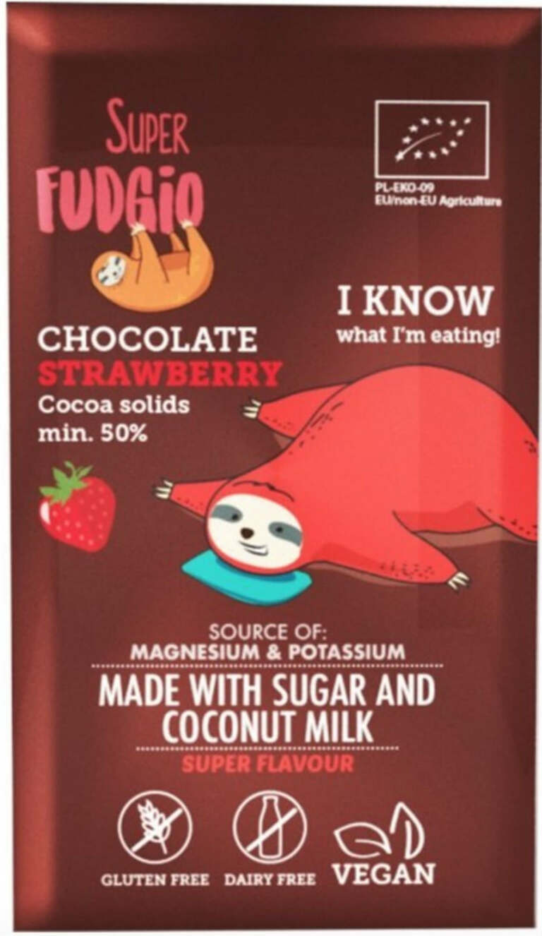 Super Fudgio Čokoláda s kokosovým mliekom a jahodami BIO 80 g
