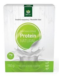 Vegánsky proteínový prášok na báze ryžového proteínu a izolátu hrachového proteínu.