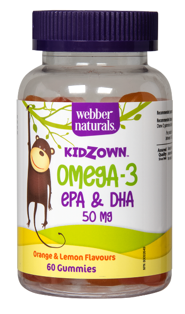 Webber Naturals Omega3 pre deti, 60 gummies 60 ks Omega-3 pre deti esenciálne mastné kyseliny sú potrebné v našej strave pre podporu fyzického, emočného a duševného zdravia. Ukázalo sa, že pomáhajú podporovať kognitívne zdravie a funkciu mozgu.