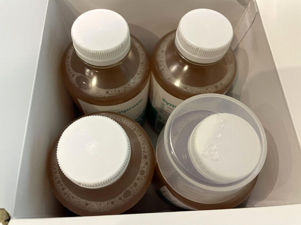 Mne prišli Symprove v štyroch pollitrových PET fľašiach s uzáverom. Objednal som si príchuť mango – marakuja. Dostupná je aj príchuť jahoda – malina a verzia bez príchute. V balení som mal aj 70 ml odmerku. To je denná dávka. Po otvorení je potrebné probiotiká skladovať v chladničke. Aj keď som bol voči tekutým probiotikám skeptický, v priebehu užívania som zistil, že dať si každé ráno nalačno jednu odmerku nie je tak náročné.