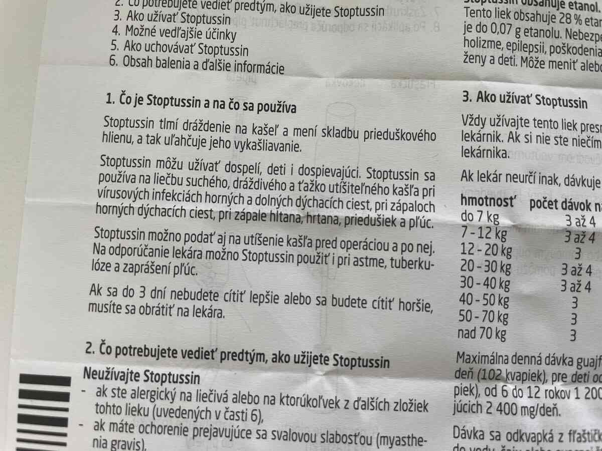 Jednou z klasík v našej lekárničke sú kvapky Stoptussin. Z môjho detstva si pamätám, že mi ich dávala aj moja mamina. Vtedy ešte neexistovalo toľko druhov sirupov a kvapiek a Stoptussin patril v našej domácnosti do skupiny liekov, ktoré "vždy pomôžu".